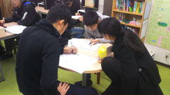 毎年恒例で、来てすぐのウォーミングアップで英語の歌を歌詞を見ながら解釈解説し、数学はちょっと変わった入試問題を解いて解説したりし、あとは各自の課題をどんどんやってもらい質問を受け付けたり、アドバイスする、という感じで進めていっています。